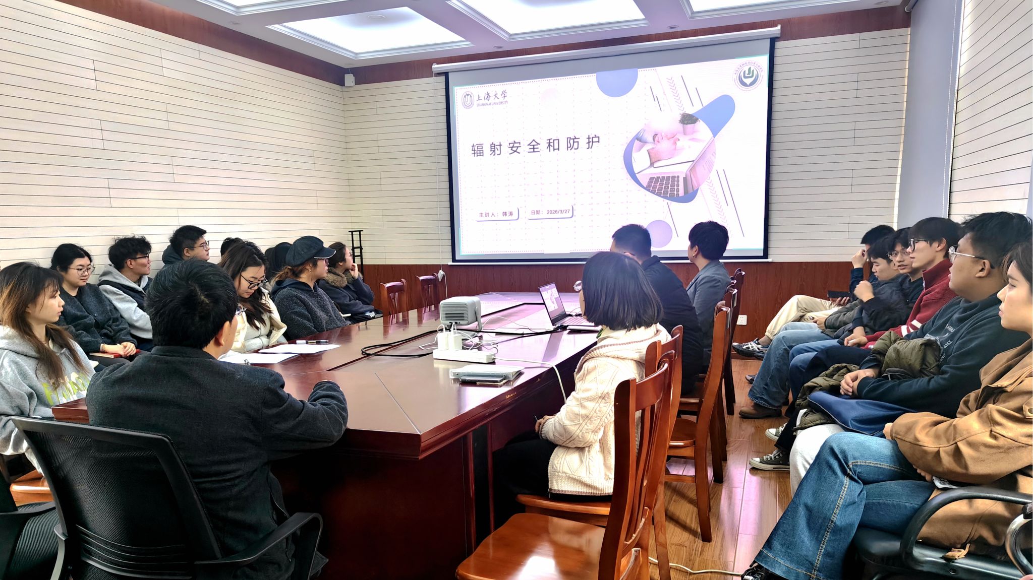 为进一步规范学校辐射安全管理工作,强化涉辐人员安全防护意识与操作技能,切实保障师生人身安全与校园环境安全,2026年3月27日,上海大学在射线所1号楼211室,以线上线下相结合的形式,举办辐射安全与防护专题培训。本次培训由环境与化学工程学院韩涛老师主讲,全校涉辐工作人员及相关专业师生共36人参与学习。